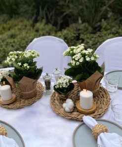 סידור שולחן ניצנית יפיפה כולל ניצנית בעציץ 12 ביוטה וניצנית בעציץ 9 ביוטה, במיוחד בשביל האירוע שלך.