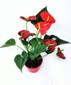 אנטוריום , צמח בית טרופי בעל פריחה אדומה וורודה ממשפחת הלוף, בצבע אדום זוהר. הפרח מזכיר פלמינגו עם מקור מפותל. (המקור הוא למעשה הפריחה, והבסיס הוא מתחל והוא עלה גדול וצבעוני שעוטף את הפרח) עלים ירוקים כהים ארוכים. צורת העלה בחלק מהזנים דומה ללב. במידה והצמח אינו פורח כנראה אינו נהנה ממספיק אור (לא שמש ישירה).
