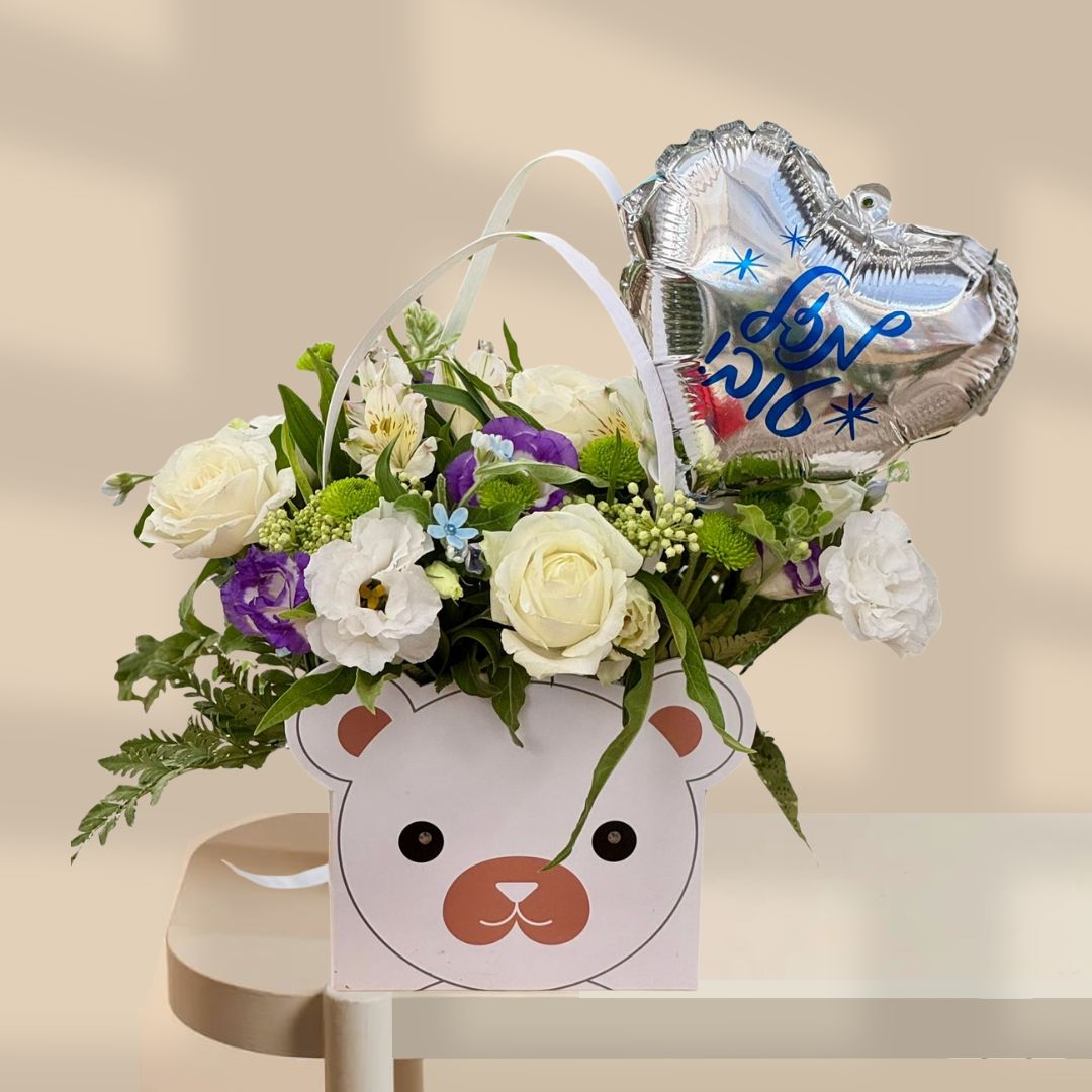 סידור מתוק בקופסת דובי, מתאים ליולדת, לילדה או לכל אחד שתרצו לפנק בדובי חמודי