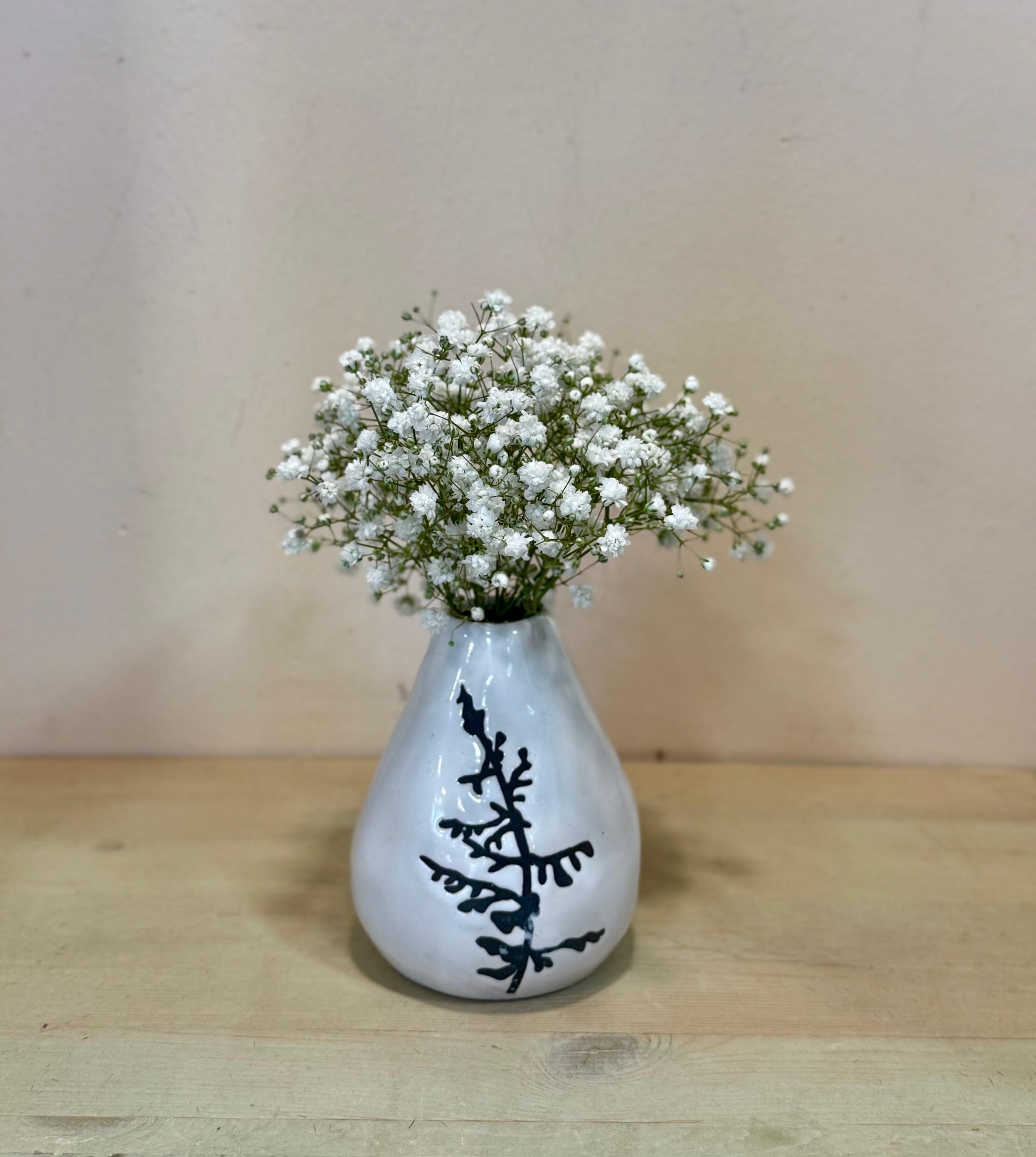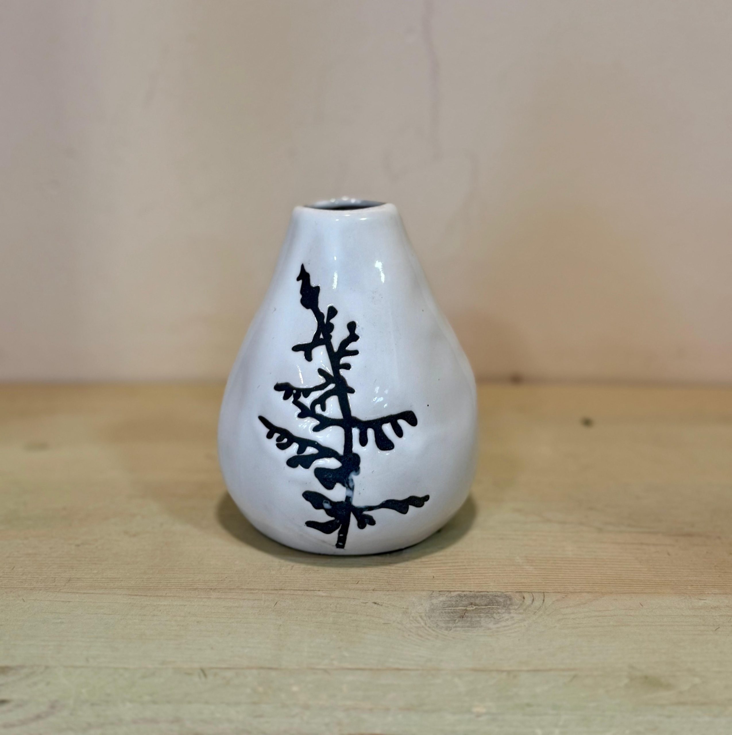 ואזה מעוצבת מקרמיקה לבנה בעיטור עלה בגובה 12 ס"מ.