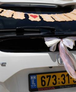 בגב הרכב, יתלה שלט שיאיר לסביבה, כי ברכב זה מתחתנים זוג מקסים היום. (Just married)