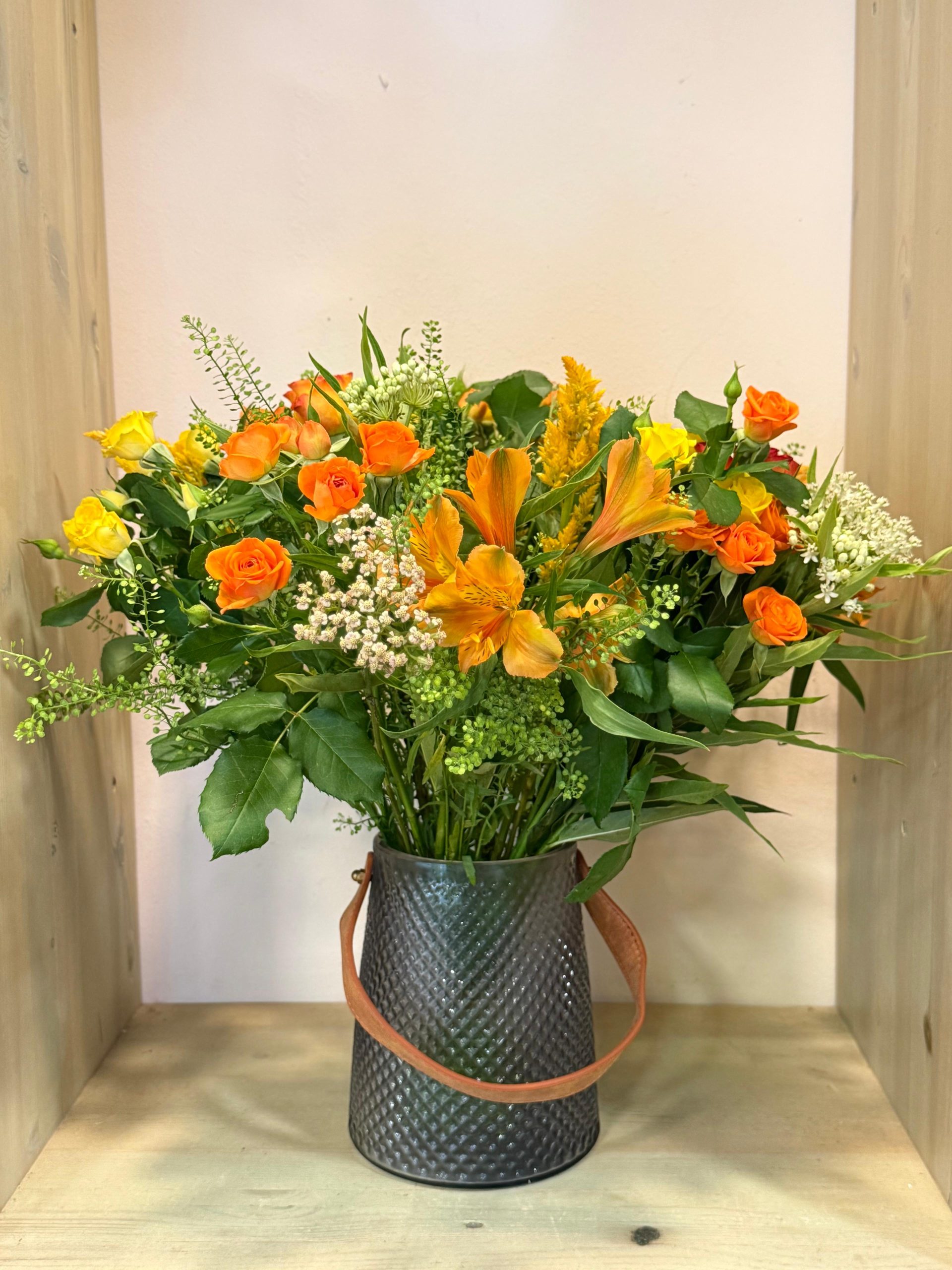 מעוצבת בגוון אפרפר עם רצועת עור חומה