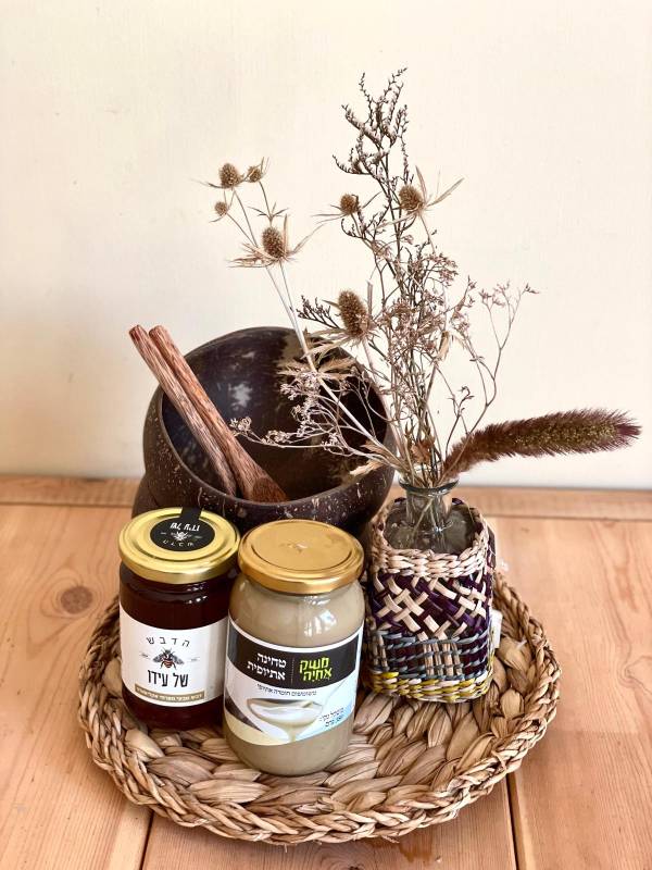 מארז מפנק הכולל בתוכו שתי קערות קוקוס עם כפיות שיתאימו ליוגורט או לסלט שלכם, טחינה משומשום חומרה אתיופי ודבש מפרחי אקליפטוס תוצרת הארץ. למארז מצורף גם ואזה עטופה בקש עם זר פרחים מיובשים שישדרגו כל פינה בבית.