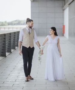 זר כלה נעמה – צמיד חן מפרחים ליום המיוחד שלך, משתלשל לאורך של עד כ-30 ס"מ, משולב בחרוזי פנינה חינניים.