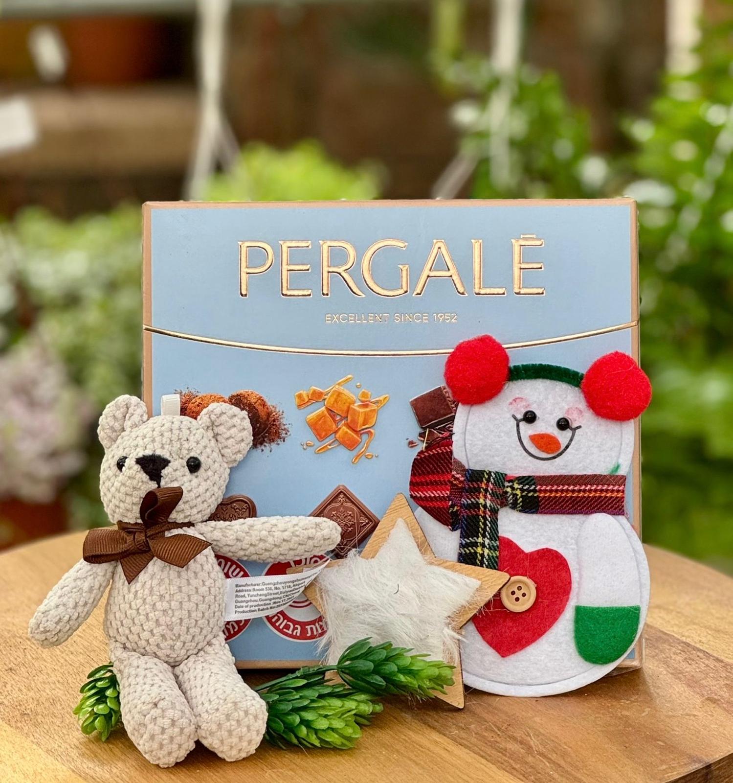 מארז צבעוני ושמח עם פרליני שוקולד ואביזרים באווירת הכריסמס והנוביגוד.