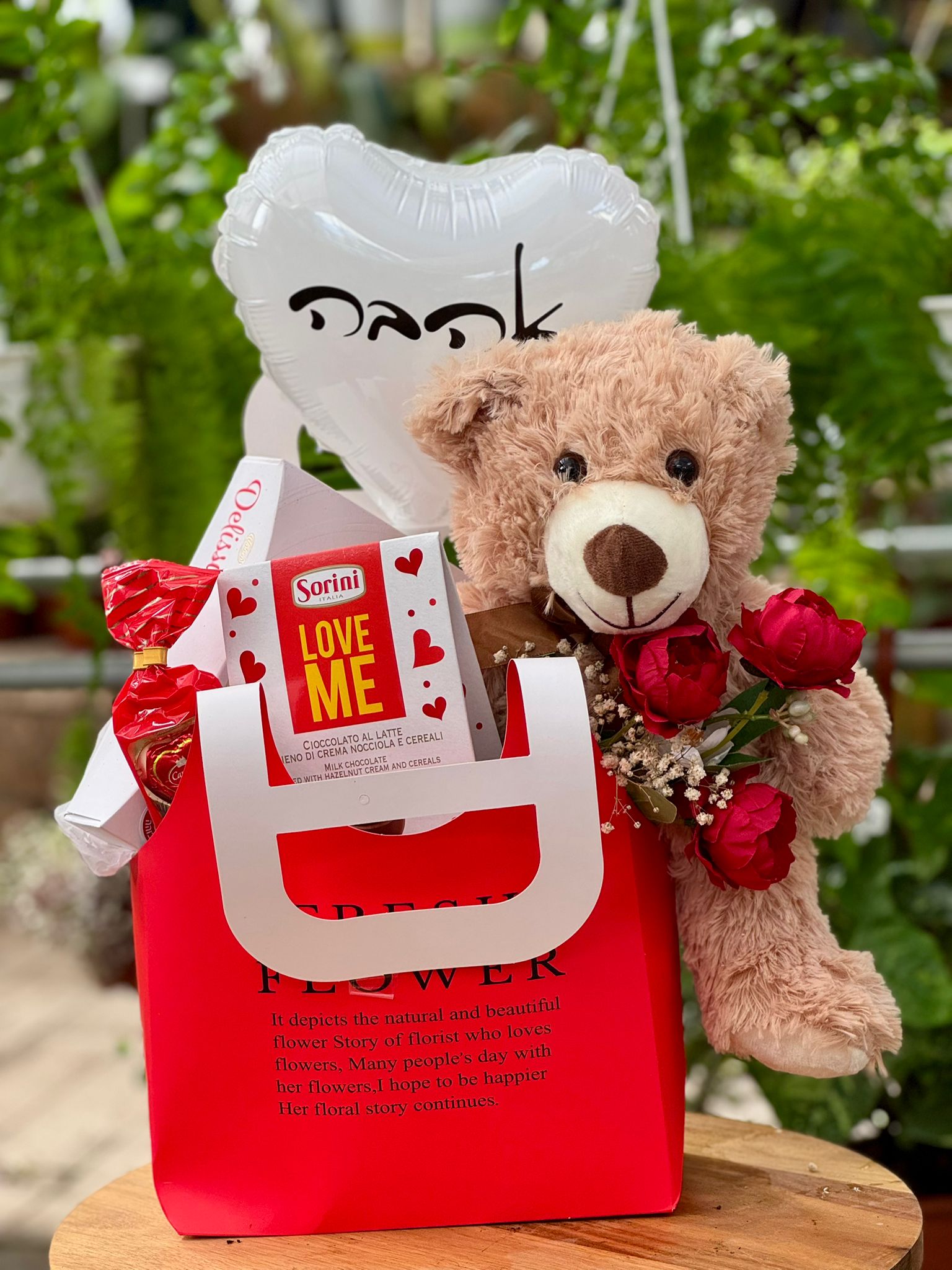 מארז רגע לאהוב – מארז רומנטי ומפנק לט"ו באב (או לכל רגע של אהבה), שכולו תשומת לב, מתיקות ורוך.