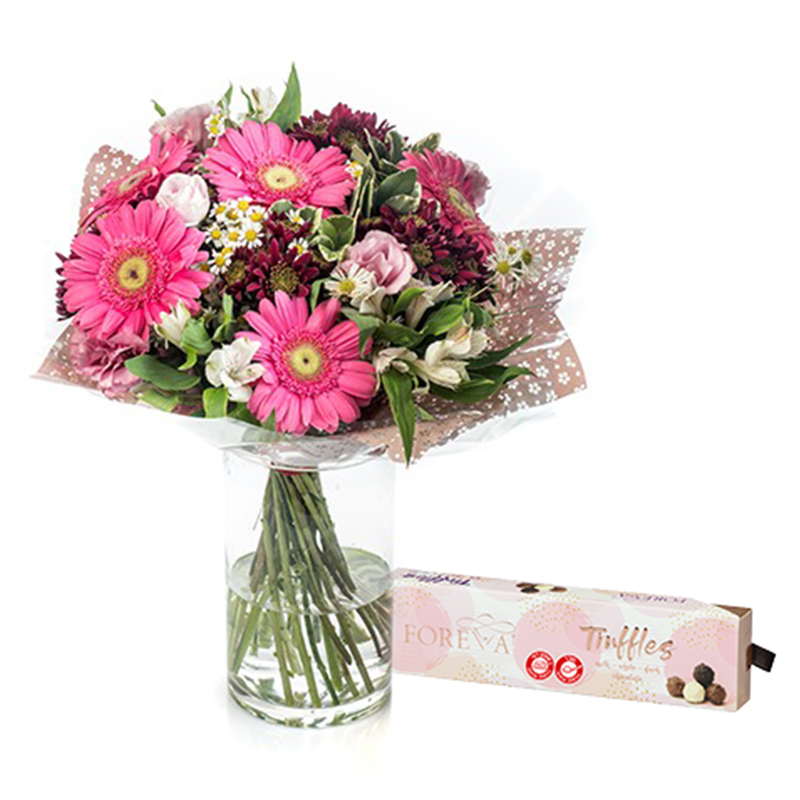מארז זה כולל: זר אביב (ללא וואזה) ושוקולד (בהתאם למלאי).