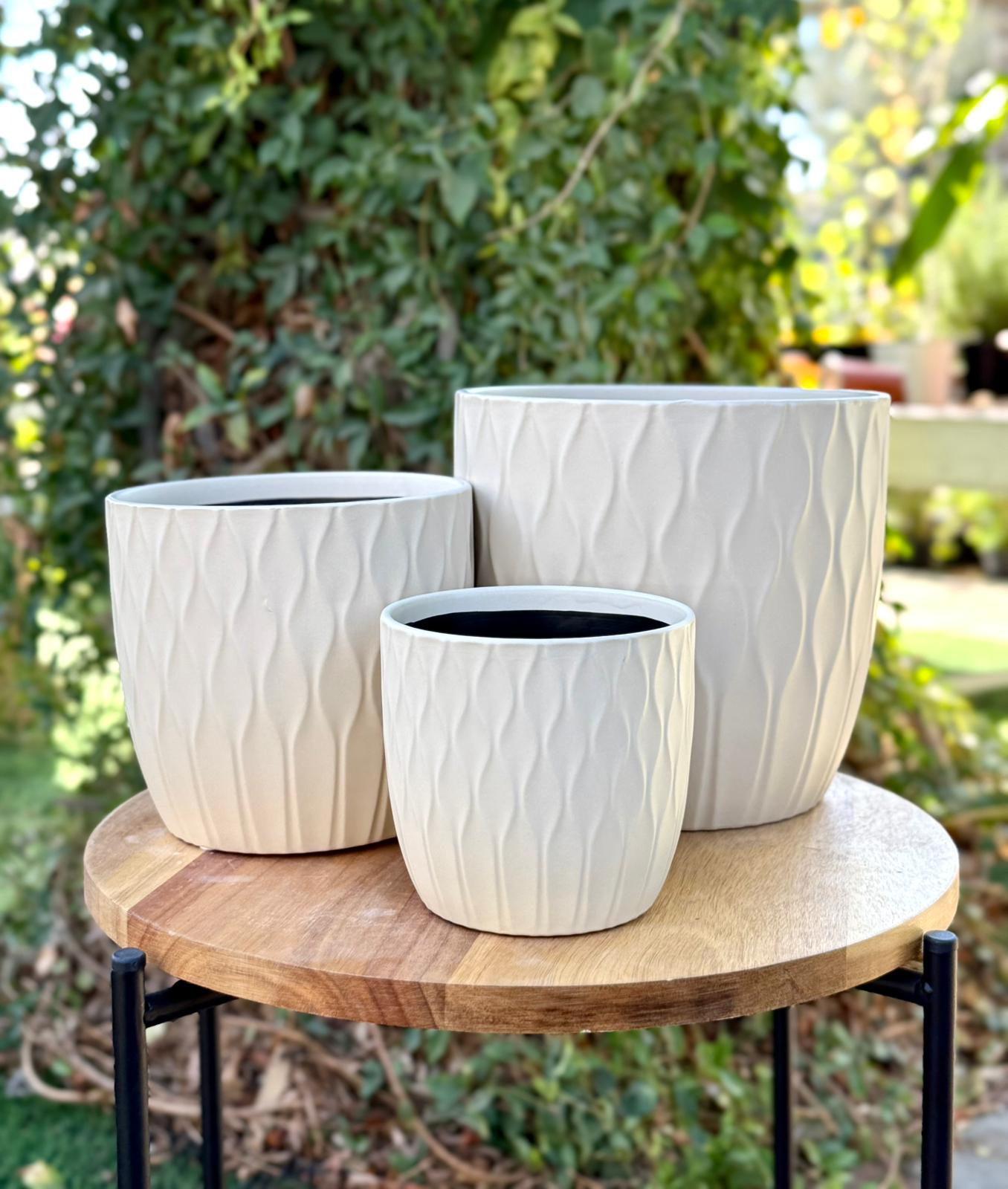 עציץ קרמיקה גלים לבן