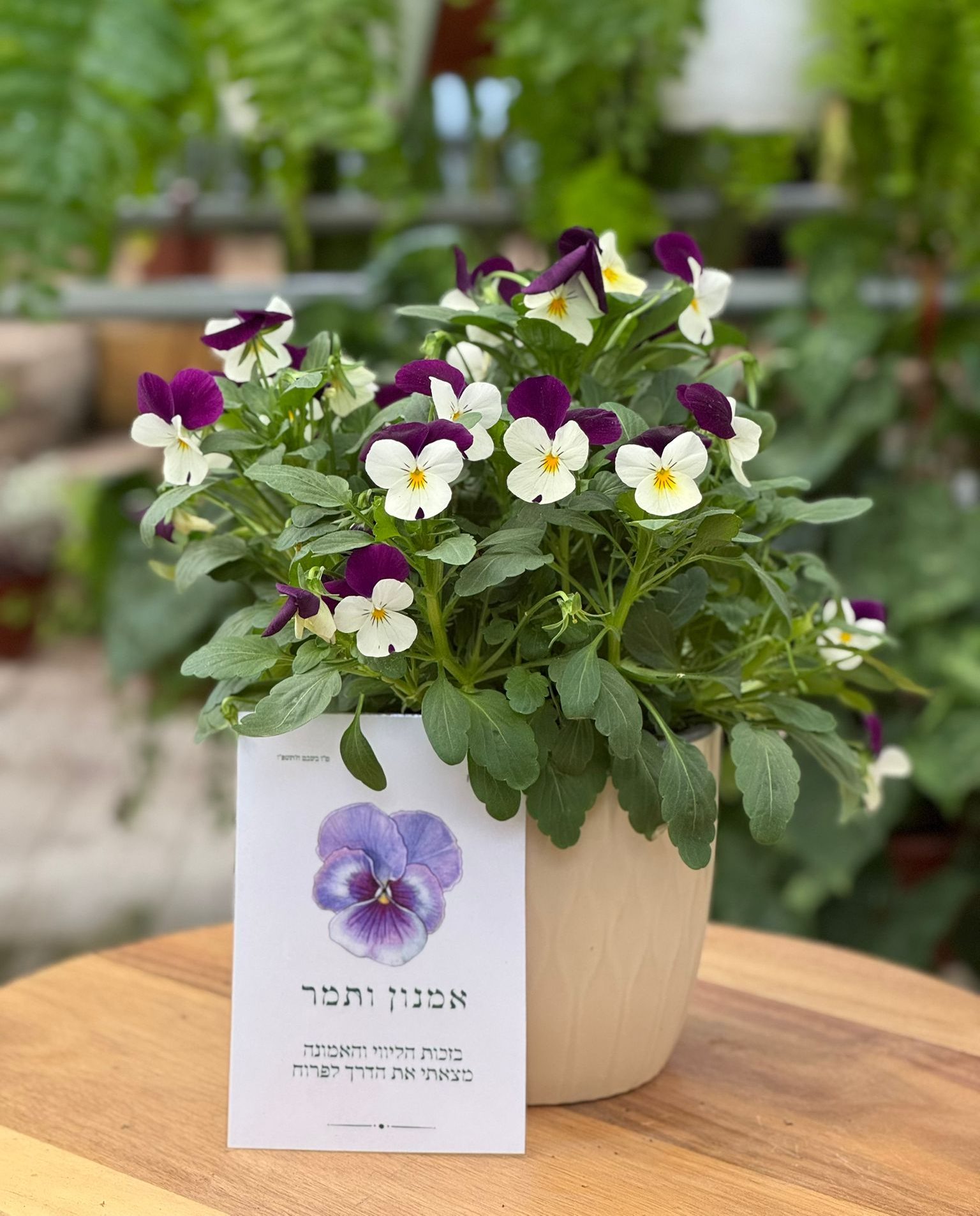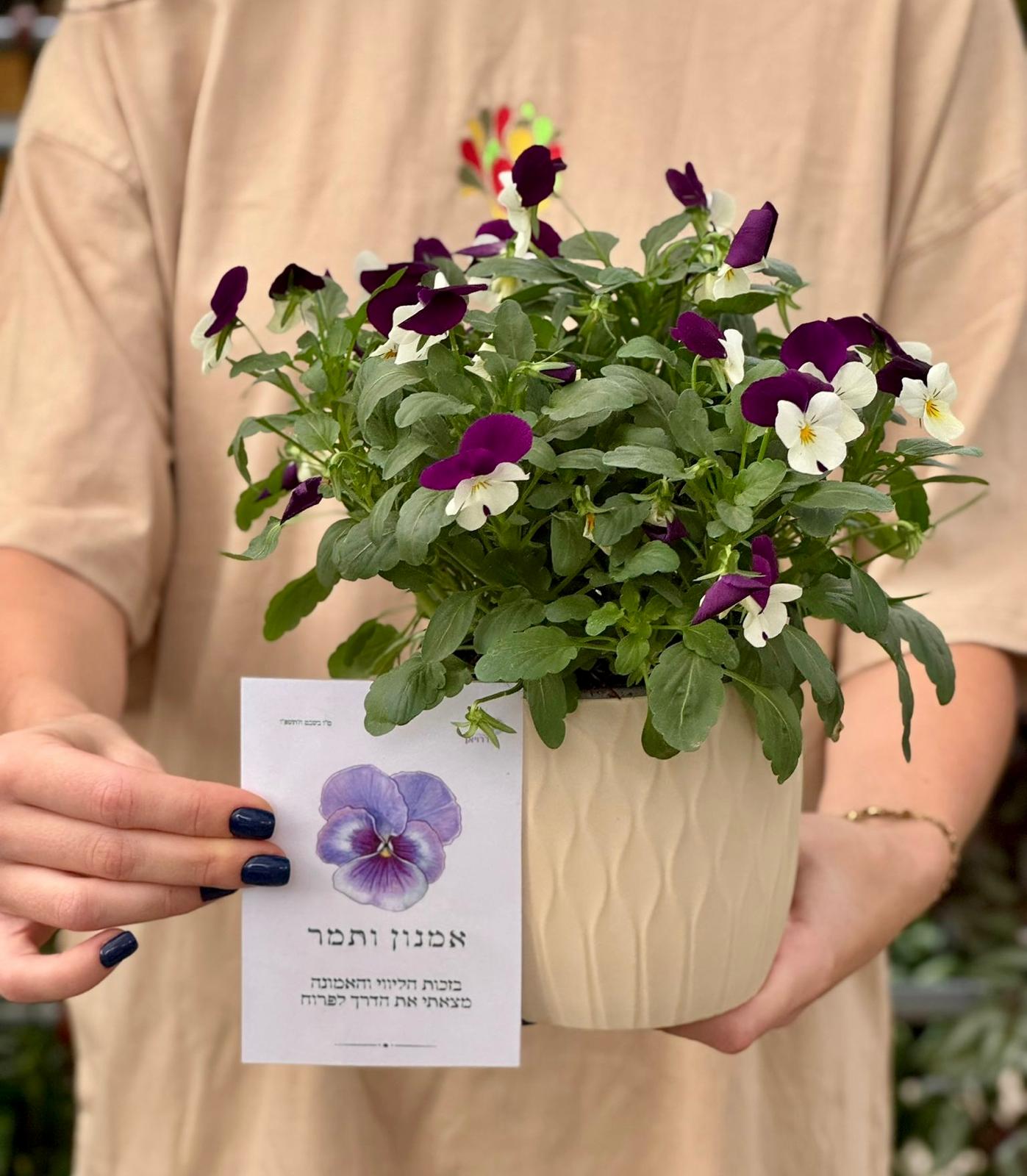 מארז פורח להוקרת תודה מלווה בכרטיס עם מסר ייחודי.