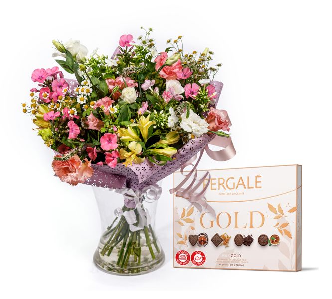 מארז אביבי הכולל זר summer time (לא כולל וואזה) ושוקולד 100 גר'